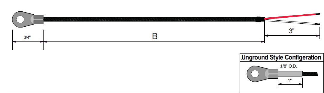 Ring Terminal style Thermocouple are designed for mechanical fastening to tooling, motors or to any surface where temperature monitoring or control is required. There are a big variety of ring terminal sizes, wire insulations FEP 400°F (204°C) or Fiberglass 900°F (482°C) with optional stainless steel over-braid for abrasion resistance. The ring terminal thermocouple's terminal can be placed beneath existing screws or bolts to permit surface temperature measurement.